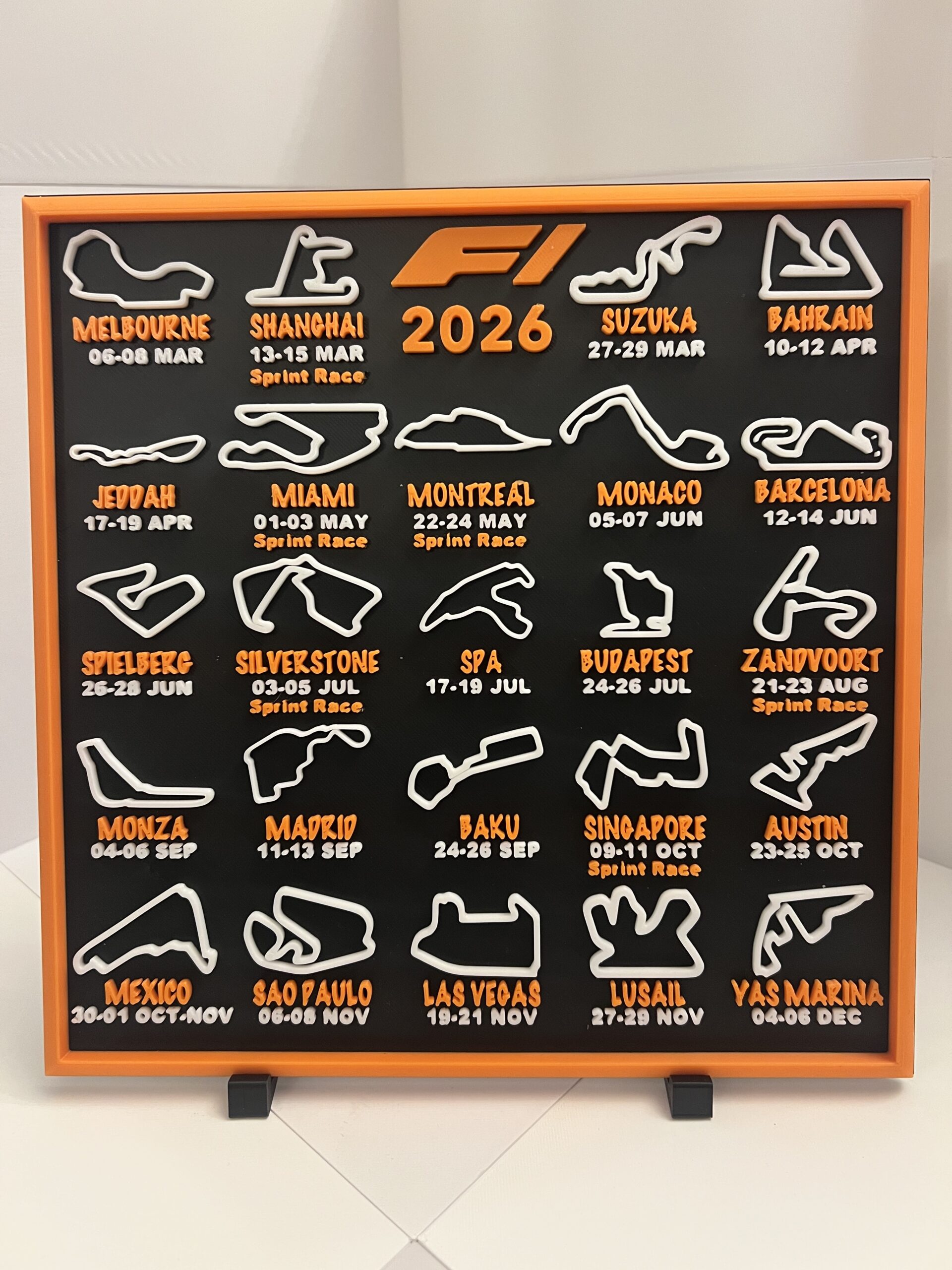 F1 2026 3D Circuit Calendar – Formula 1 Orange McLaren Inspired Edition With Stand