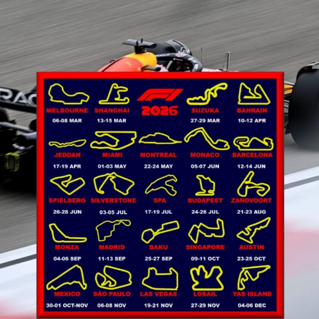 🏁 Full 2026 Season – All 24 official F1 Grand Prix races, from Melbourne to Yas Island. 🖤 Premium Design – Black carbon-look background with crisp yellow 3D circuit outlines. 📐 Perfect Display Size – Approx. 21 cm square, ideal for a desk, shelf, or fan cave. 🇬🇧 3D Printed in the UK – Locally made with precision, not a mass-produced import. Why Red Bull Racing Fans Love It ✔️ Celebrate the entire 2026 F1 season at a glance. ✔️ Show your support with the Red Bull colours edition. ✔️ 3D raised tracks make each circuit instantly recognisable. ✔️ Perfect for gifting to F1 fans, collectors, or die-hard Red Bull Racing supporters. 🎁 Ideal as a birthday, Christmas, or race-weekend gift for anyone who loves Formula 1. 👉 Order now and own the F1 2026 Red Bull Colours Edition Circuit Calendar — a must-have for every Red Bull fan!