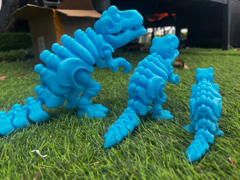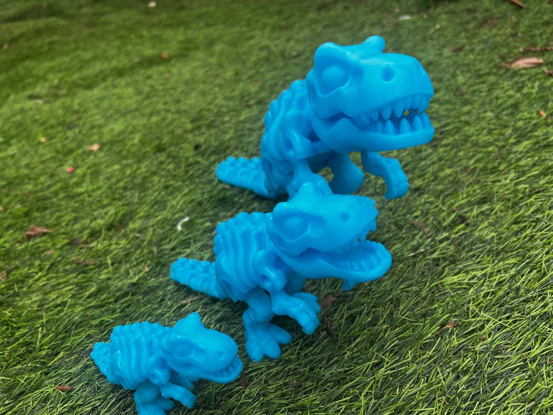 Family of Glow-In-The-Dark Articulated Flexi T-Rex 3D Printed Dinosaurs. What you get is:- 1 x Large Daddy Dinosaur 1 x Medium Mummy Dinosaur 1 x Small Toddler Dinosaur